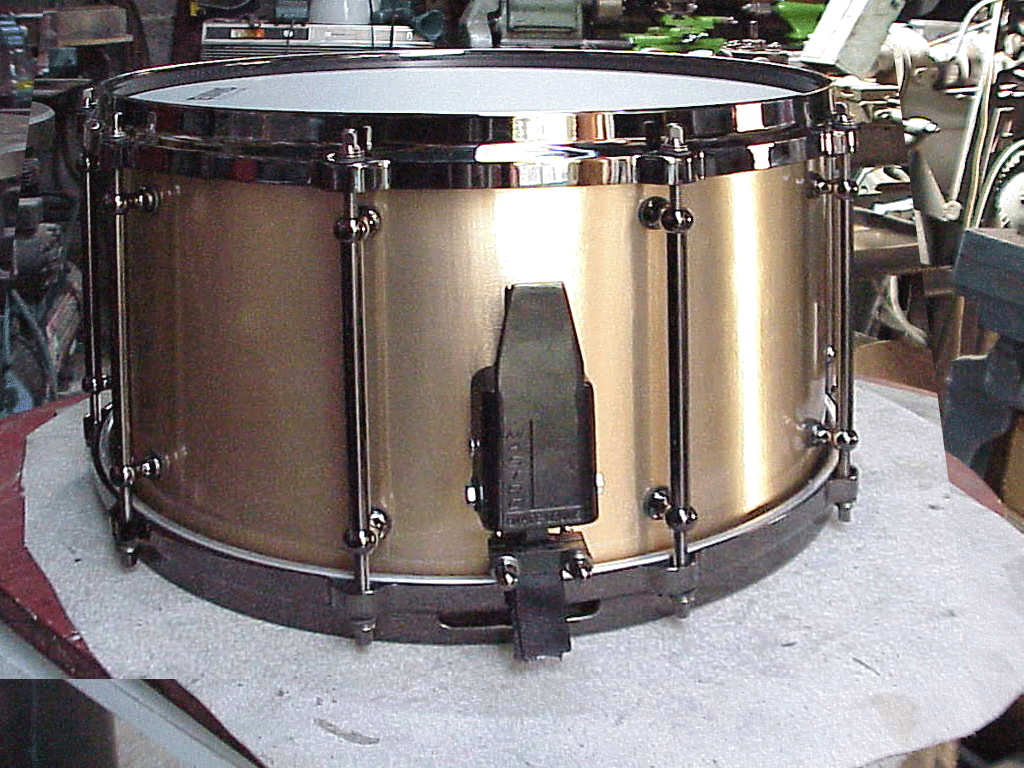 BRASS SNARE. SUPERB RIGIDITY,GREAT WARMTH AND EXCEPTIONAL CLARITY TROUGHOUT ITS ENTIRE TONAL RANGE HAS MADE IT THE BRASS CHOICE FOR MANY OF THE TOP RECORDING AND PERFORMING PROFESSIONALS DRUMMERS.