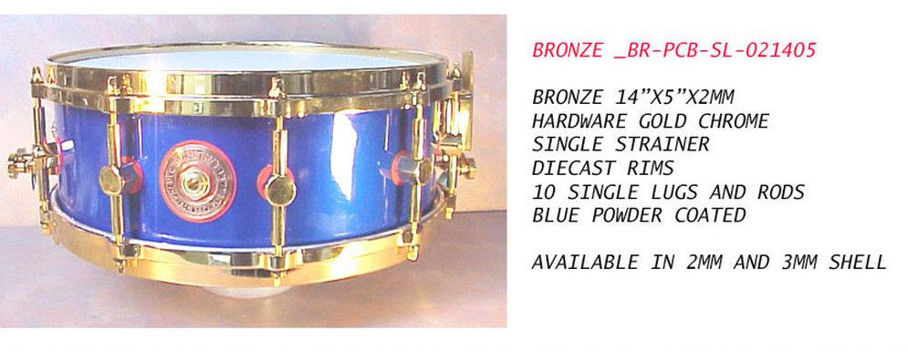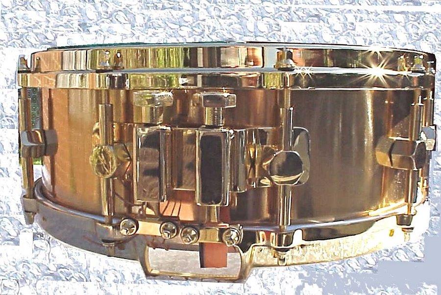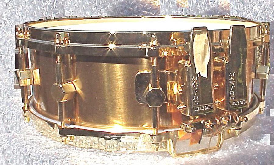 BEAUTIFULLY GOLD PLATED WITH HI-TENSION LUGS AND SUPER DIECAST HOOPS PROVIDE UNIFORM TUNING STABILITY AND PRECISION DRUM HEAD SEATING. THE BRONZE 14'x5"x3mm IS WELL SUITED TO DRUMMERS REQUIRING SENSITIVE RESPOND AND OVER DYNAMIC CONTROL